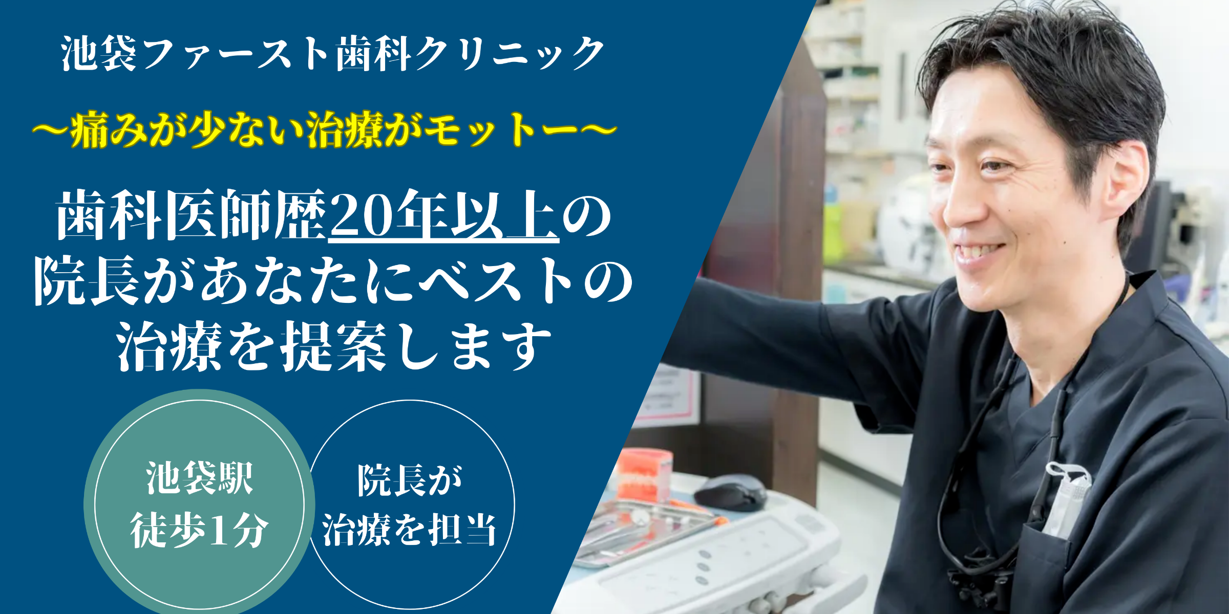 はじめまして。池袋ファースト歯科クリニックの院長、塩谷 慶太(しおや けいた)です。