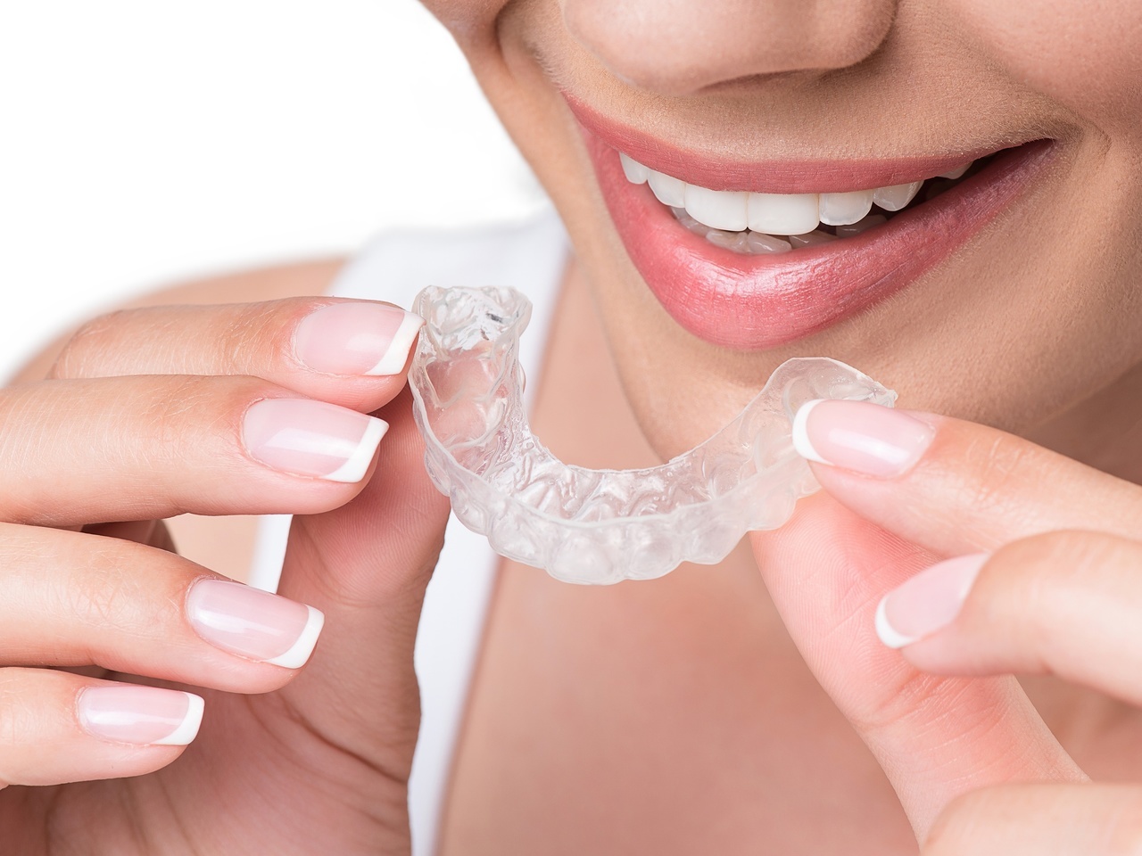 治療に使うマウスピースは、患者さま自身で簡単に取り外すことができます。矯正装置を歯に固定したままの従来の治療法とは違い、食事や歯みがきの際はマウスピースを外していただけますので、むし歯や歯周病のリスクも低く、煩わしさを感じることもありません。