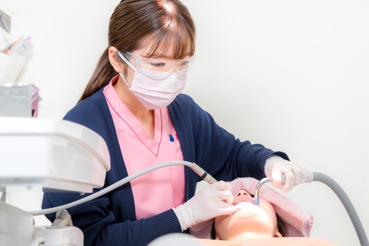 当院では、歯石や歯垢の除去、セルフケアのアドバイスを歯科衛生士が担当。患者さまお一人おひとりに専任の歯科衛生士をおつけします。