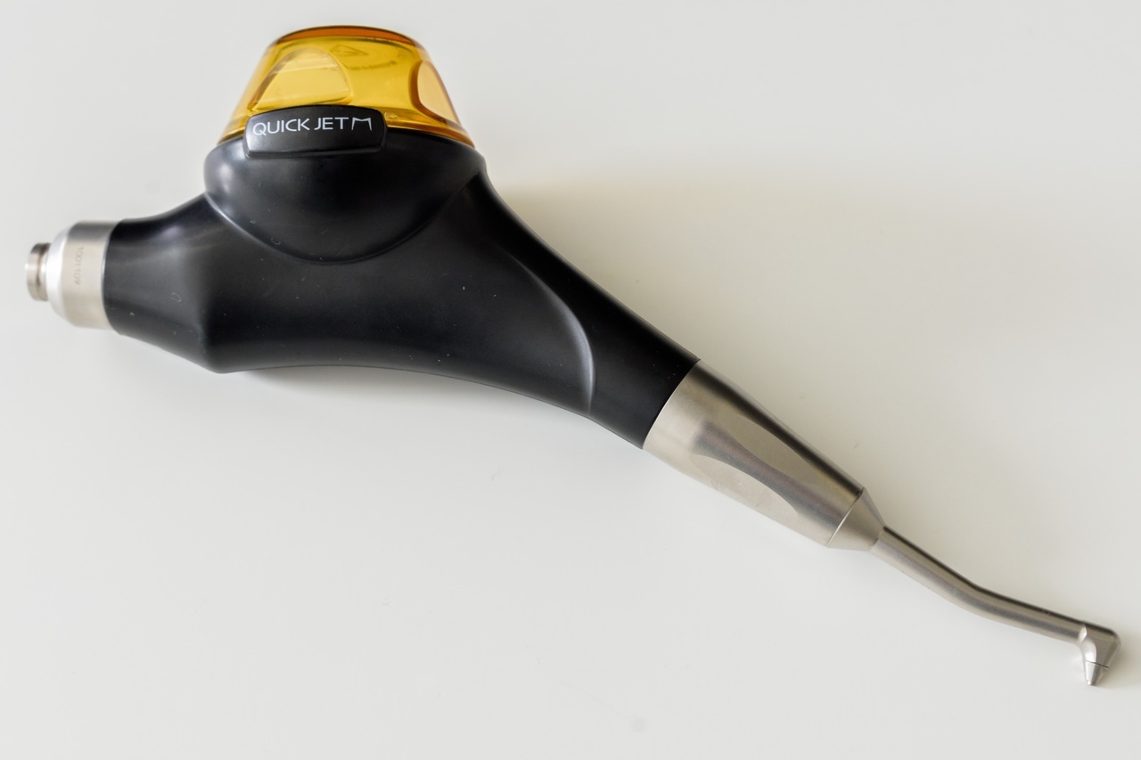 エアフローは、超微粒子のパウダーを歯の表面に吹きつける機器で、着色汚れの除去に効果的。茶しぶやタバコのヤニなどの着色汚れは、エアフローで取り除くことができます。